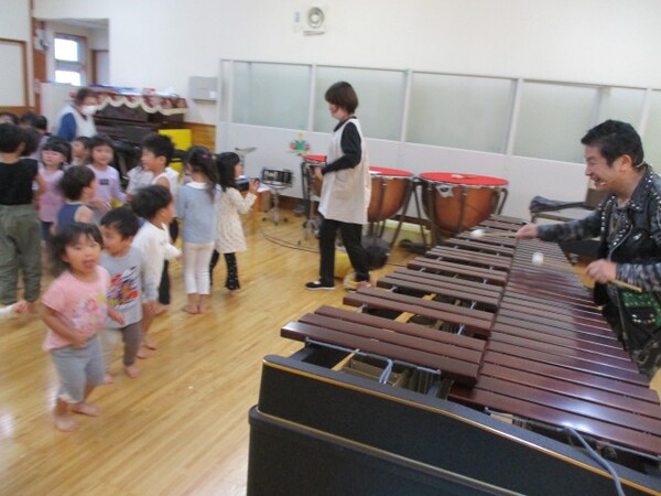 マリンバコンサート♪(木琴コンサート) R7・10・15(水)…マリンバ(木琴)コンサート♪ 「大きなマリンバ‼」 「なが〜い列車で行こう♪」 「いろんな曲を歌ったよ」 「楽しいコンサートだったね」 2025/10/15