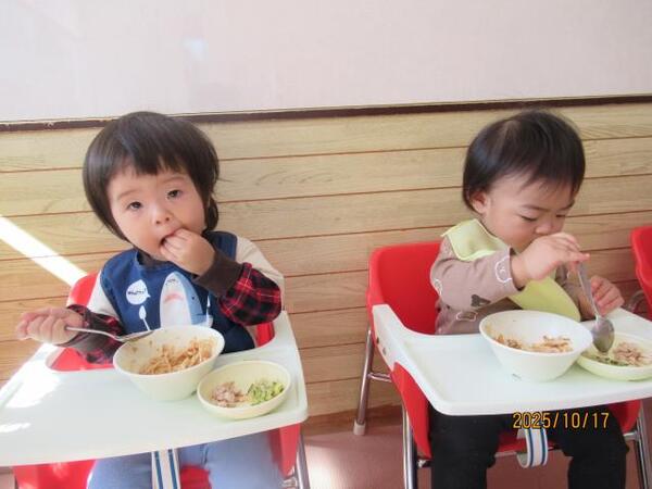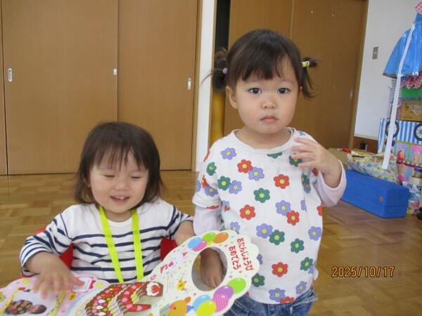 10月生まれのお誕生会🍰その2 R7・10月17日(金)…10月生まれのお誕生会🍰その2 「みんな大きくなったね」 「おばけのダンス♪」 「キャンディどうぞ♡」 「今日の給食はミートソース♪」 「離乳食もおいしいよ♡」 2025/10/17