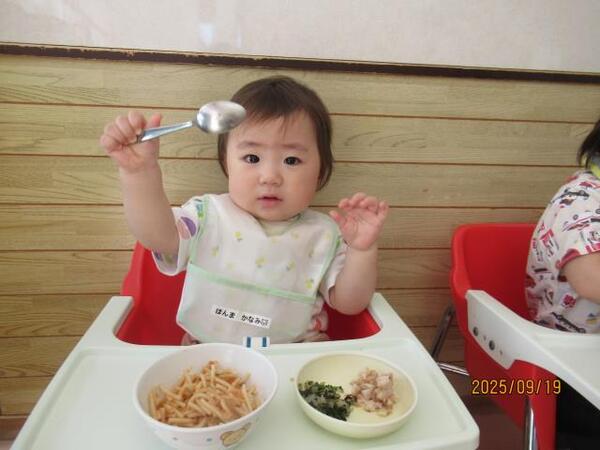 9月のお誕生会🍰2 R7・9月19日(金)…9月生まれのお誕生会🍰2 「まちがいさがし♪」 「今日の給食はスパゲッティ♪」 「ナポリタン・鶏肉のアップルソース・のり塩ナムル・豆腐とコーンスープ・果物・牛乳・ミニドック」 2025/09/19